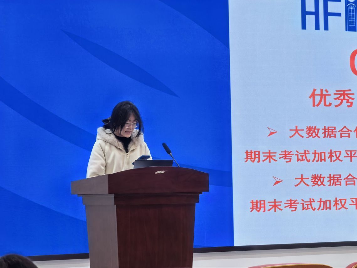 首先辅导员吴霜对上学期期末考试、大学英语四级考试整体情况进行通报,并根据不同专业对各班级平均分、及格率、优秀率等关键指标进行横向对比分析。并就请假规范、课程考勤管理、学业预警细则等学生日常管理规范和入团、入党培养流程及量化评分体系作出详细说明,激励同学们增强自我管理意识,积极进取、争先创优。